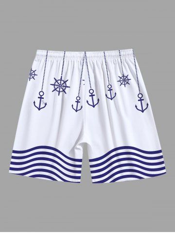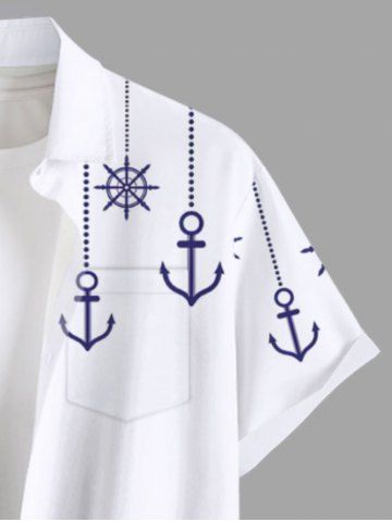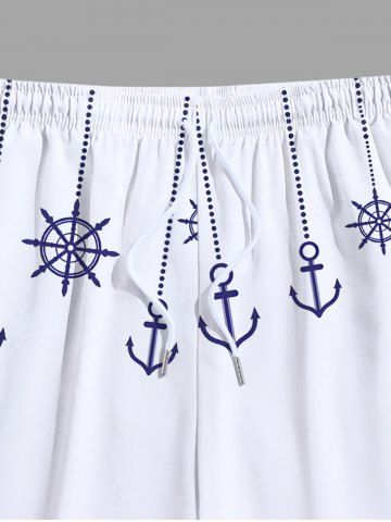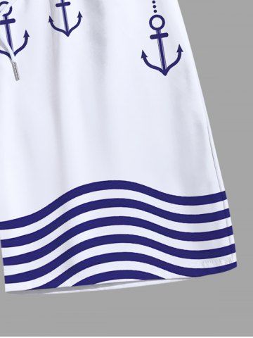Tenue de plage hawaïenne assortie grande taille à imprimé ancre et vagues pour couples - Blanc - Blanc