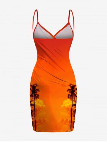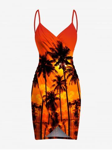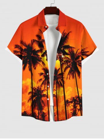 Tenue de plage hawaïenne assortie grande taille à imprimé cocotier et coucher de soleil ombré pour couples - Orange Foncé