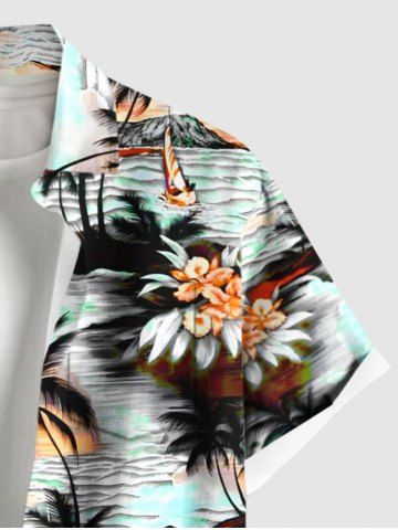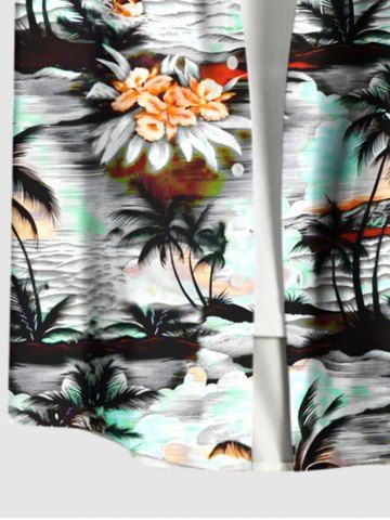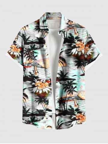 Tenue de plage hawaïenne assortie grande taille à imprimé cocotier et fleurs d'hibiscus pour couples - Blanc - Blanc