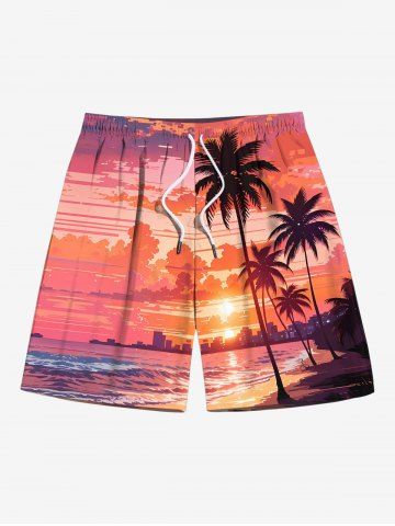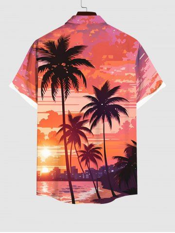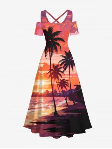 Tenues Hawaïennes Assorties> Tenue de plage hawaïenne assortie grande taille à imprimé cocotier et plage au crépuscule pour couples