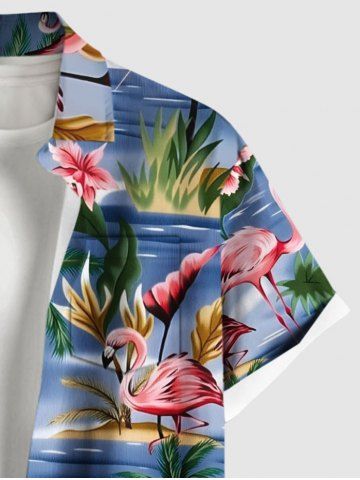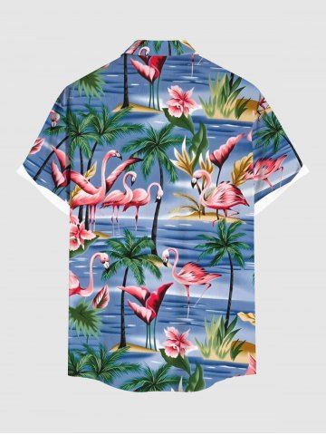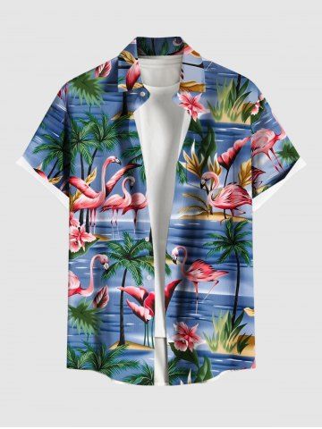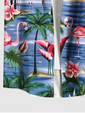 Tenue de plage hawaïenne assortie grande taille à imprimé cocotier, flamant rose et fleurs de mer pour couples - Bleu - Bleu