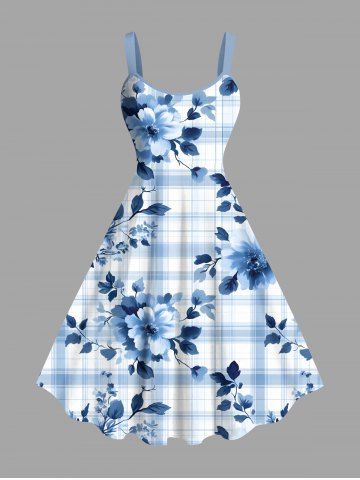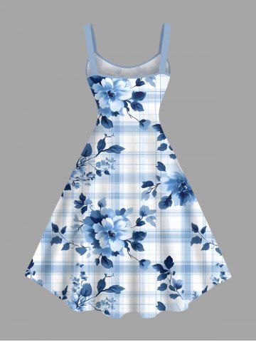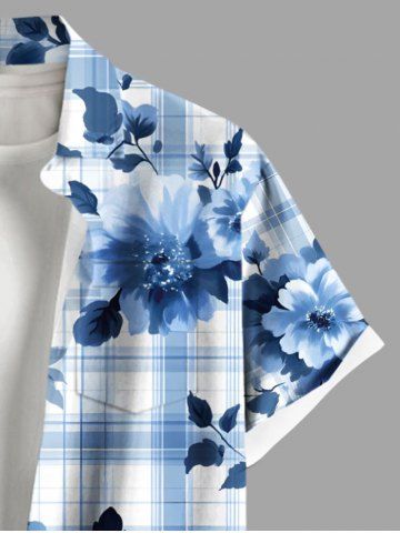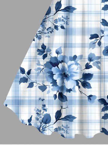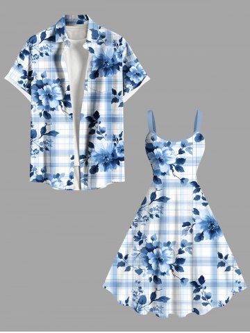 Tenue de plage hawaïenne assortie grande taille à imprimé écossais et fleurs de pivoine pour couples - Bleu Clair - Bleu Clair
