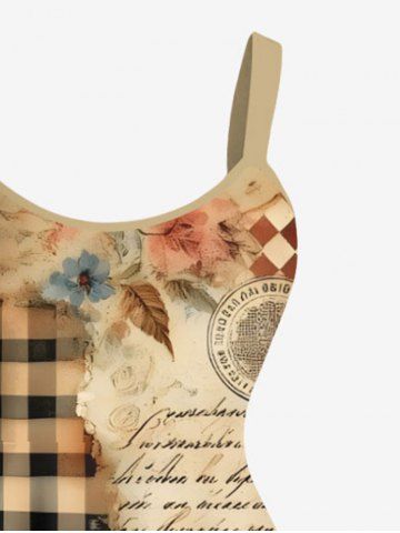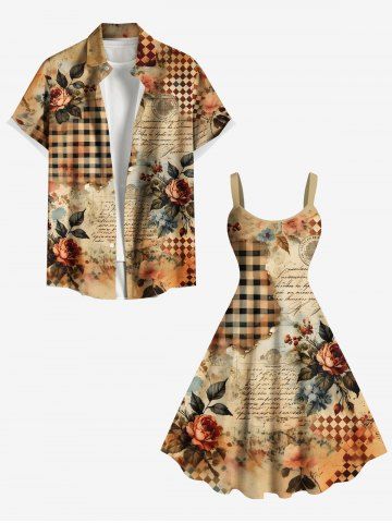Tenues Hawaïennes Assorties> Tenue de plage hawaïenne assortie grande taille à imprimé écossais, motif feuilles de roses et journaux, pour couples