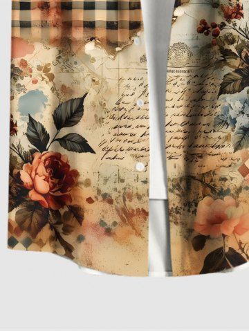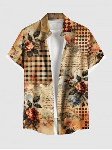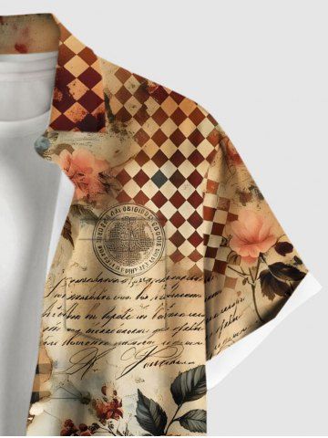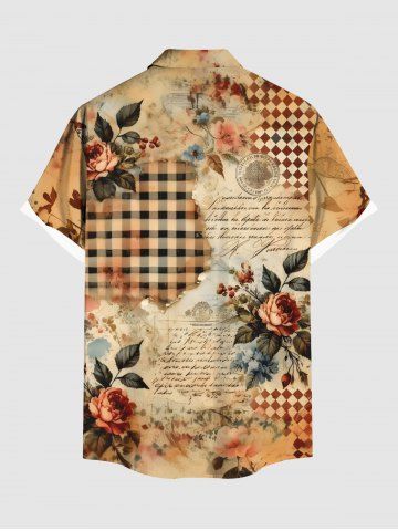 Tenue de plage hawaïenne assortie grande taille à imprimé écossais, motif feuilles de roses et journaux, pour couples - Café - Café