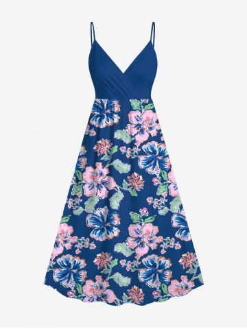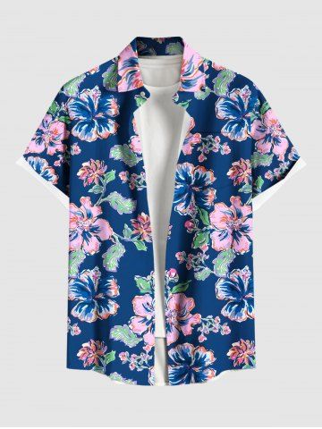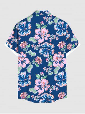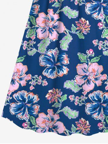 Tenue de plage hawaïenne assortie grande taille à imprimé feuilles et fleurs d'hibiscus pour couples - Bleu - Bleu