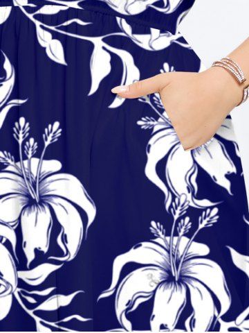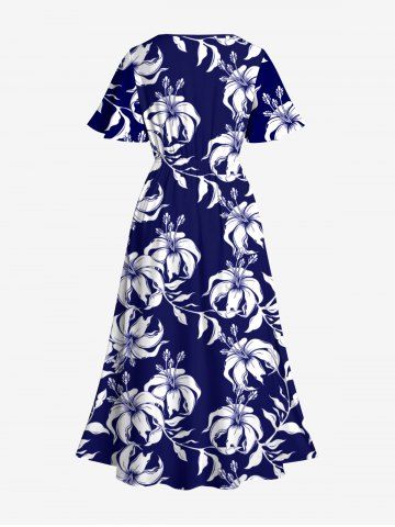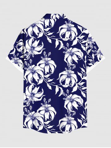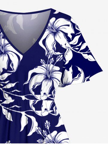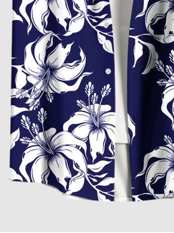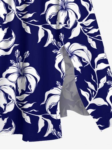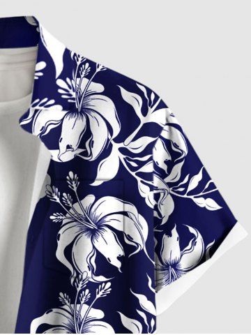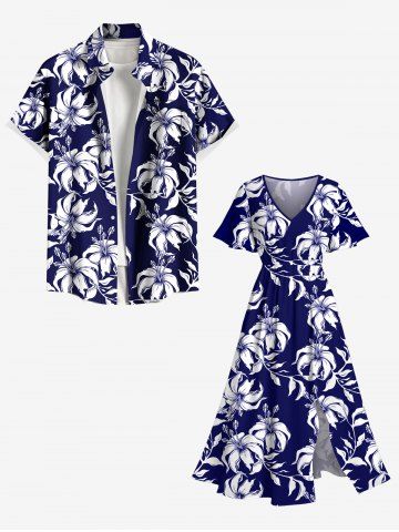 Tenue de plage hawaïenne assortie grande taille à imprimé feuilles et fleurs d'hibiscus pour couples - Bleu Marine - Bleu Marin