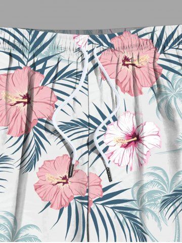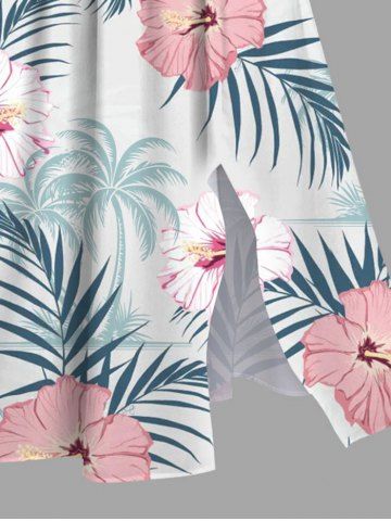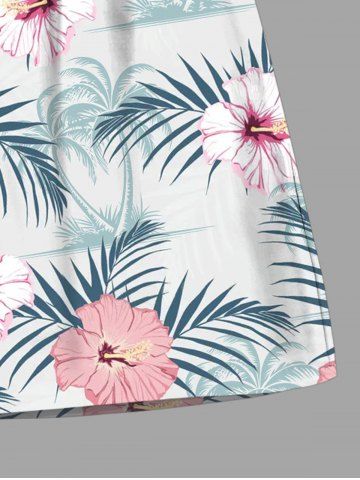 Tenue de plage hawaïenne assortie grande taille à imprimé feuilles tropicales et fleurs d'hibiscus pour couples - Blanc - Blanc