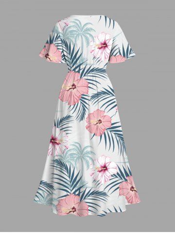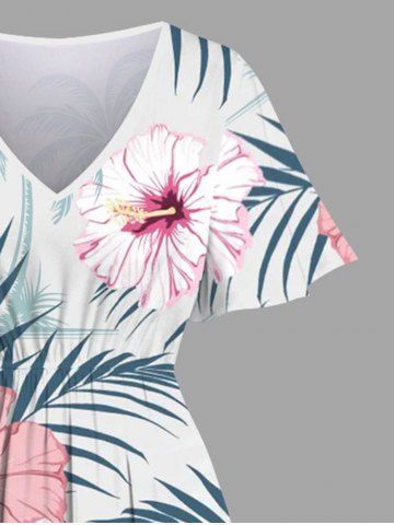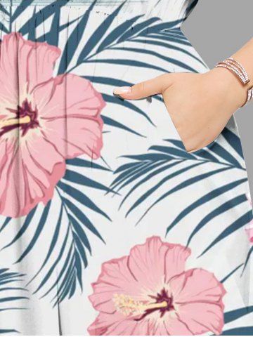 Tenues Hawaïennes Assorties> Tenue de plage hawaïenne assortie grande taille à imprimé feuilles tropicales et fleurs d'hibiscus pour couples