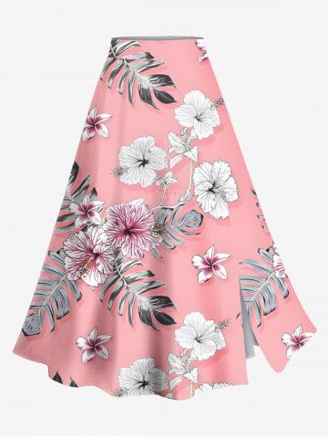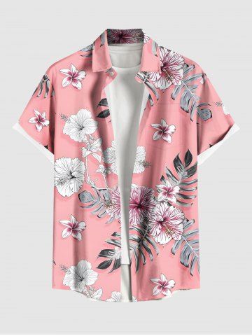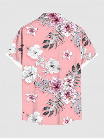 Tenue de plage hawaïenne assortie grande taille à imprimé feuilles tropicales et fleurs d'hibiscus pour couples - Rose Clair - Rose Léger