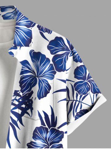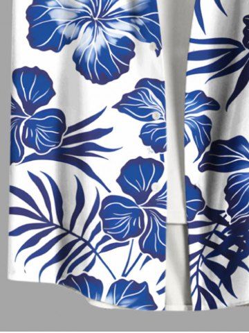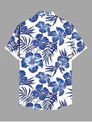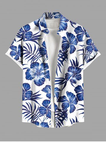 Tenue de plage hawaïenne assortie grande taille à imprimé feuilles tropicales et fleurs d'hibiscus pour couples - Bleu - Bleu