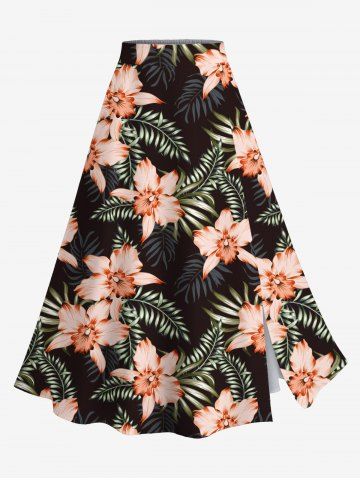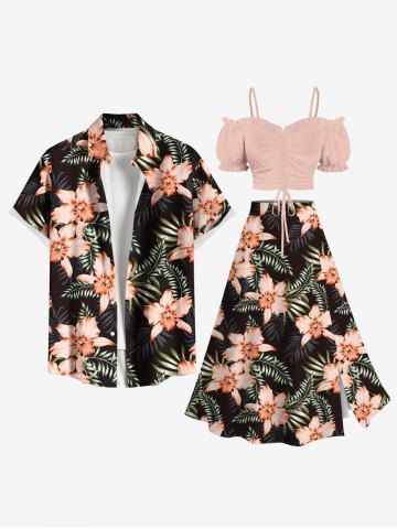 Tenues Hawaïennes Assorties> Tenue de plage hawaïenne assortie grande taille à imprimé feuilles tropicales et fleurs d'hibiscus pour couples