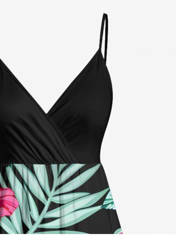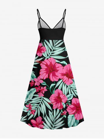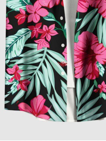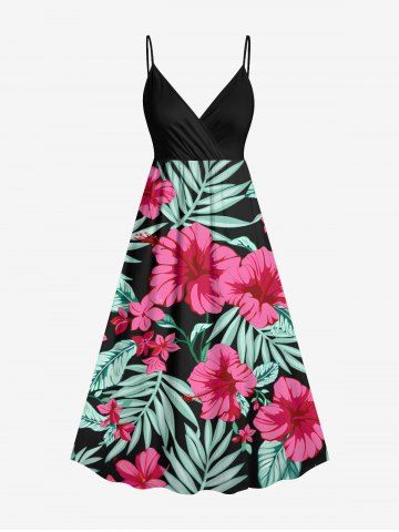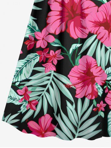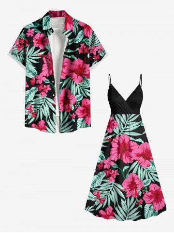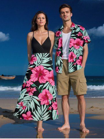 Tenues Hawaïennes Assorties> Tenue de plage hawaïenne assortie grande taille à imprimé feuilles tropicales et fleurs d'hibiscus pour couples