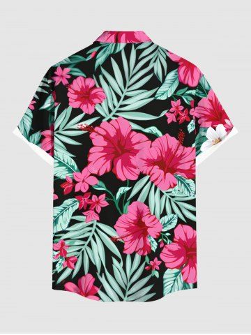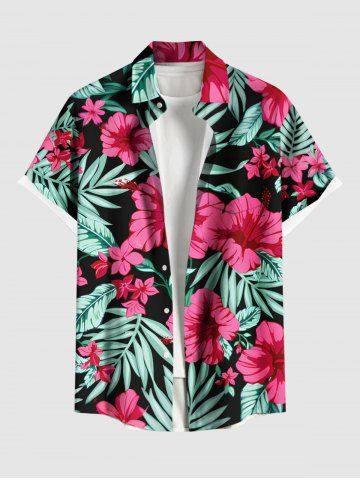 Tenue de plage hawaïenne assortie grande taille à imprimé feuilles tropicales et fleurs d'hibiscus pour couples - Rose Clair - Rose Léger