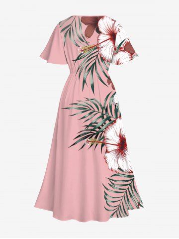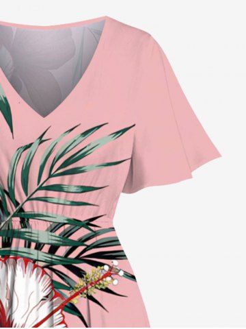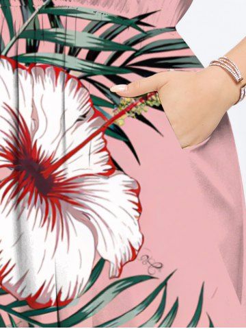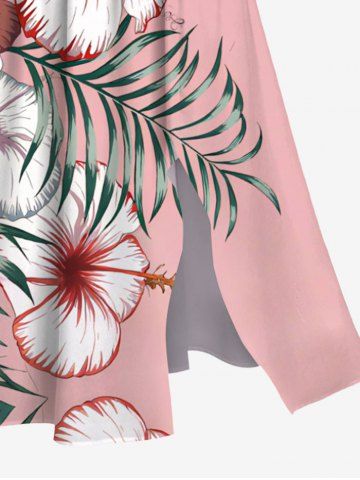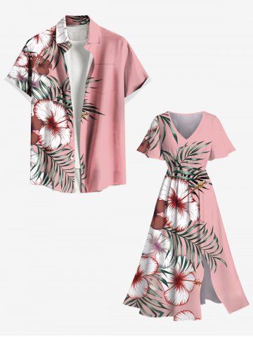 Tenue de plage hawaïenne assortie grande taille à imprimé feuilles tropicales et fleurs d'hibiscus pour couples - Rose Clair - Rose Léger