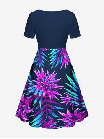 Tenue de plage hawaïenne assortie grande taille à imprimé feuilles tropicales et fleurs pour couples - Pourpre - Pourpre