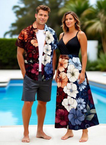 Tenues Hawaïennes Assorties> Tenue de plage hawaïenne assortie grande taille à imprimé fleurs colorées pour couples