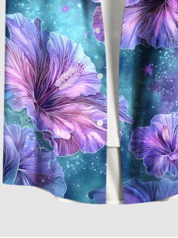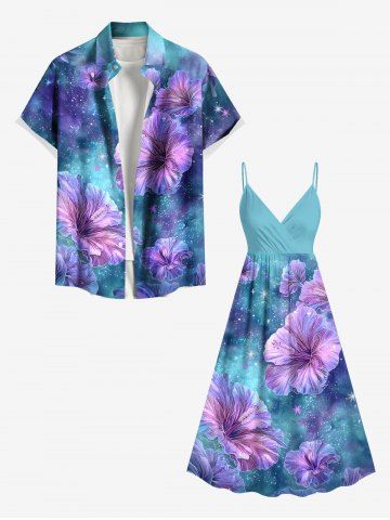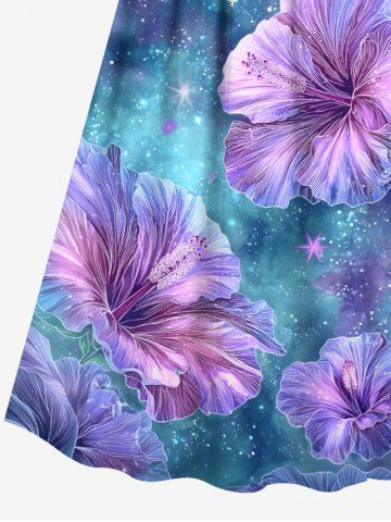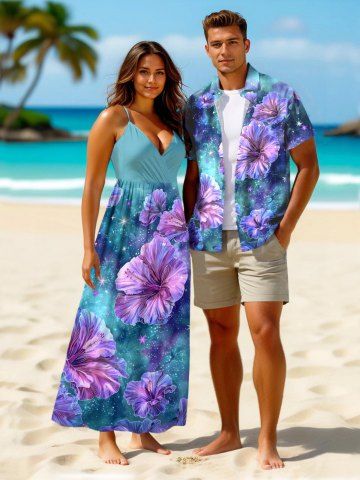 Tenues Hawaïennes Assorties > Tenue de plage hawaïenne assortie grande taille à imprimé fleurs d'hibiscus tie-dye Galaxy pour couples