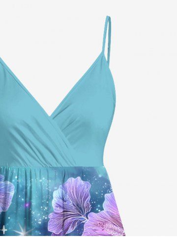 Tenue de plage hawaïenne assortie grande taille à imprimé fleurs d'hibiscus tie-dye Galaxy pour couples - Bleu Ciel - Bleu Ciel