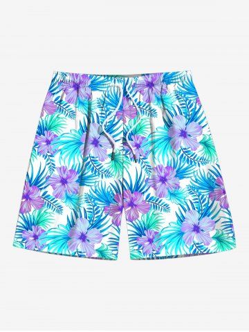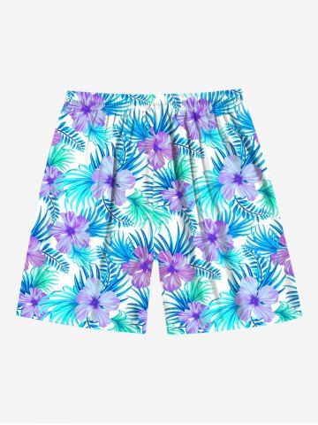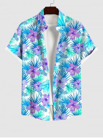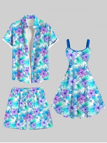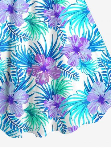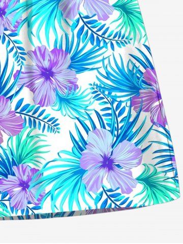 Tenue de plage hawaïenne assortie grande taille à imprimé fleurs et feuilles de palmier pour couples - Bleu Clair - Bleu Clair