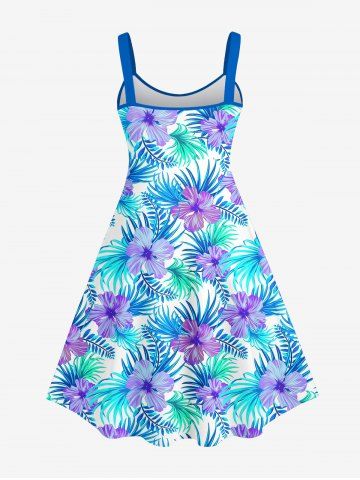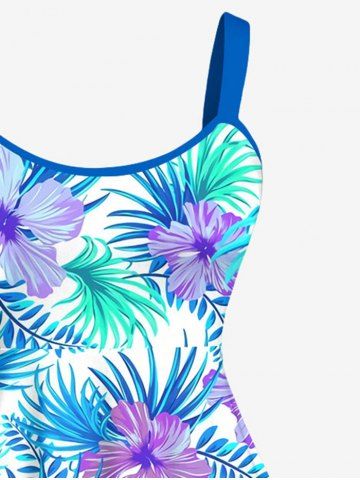 Tenues Hawaïennes Assorties> Tenue de plage hawaïenne assortie grande taille à imprimé fleurs et feuilles de palmier pour couples
