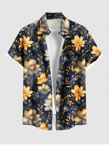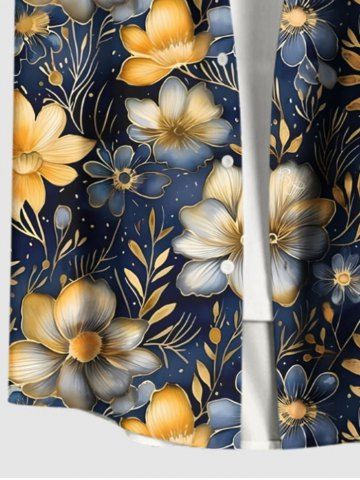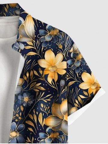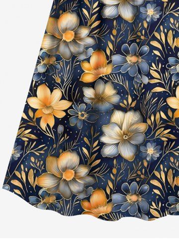 Tenue de plage hawaïenne assortie grande taille à imprimé fleurs et feuilles pour couples - Bleu Profond