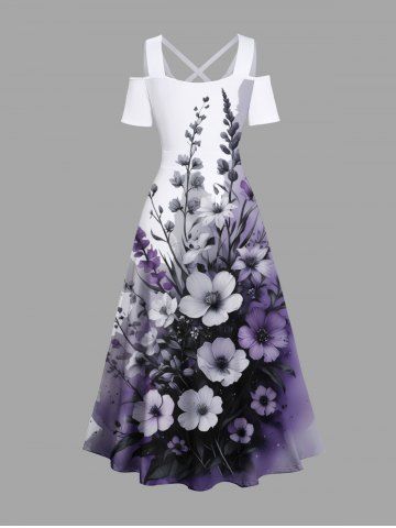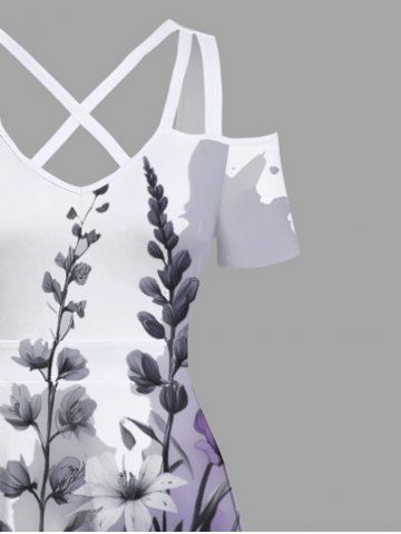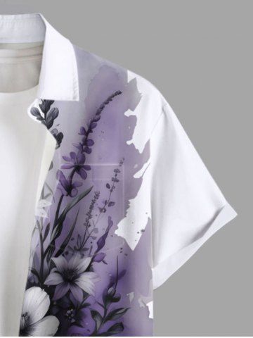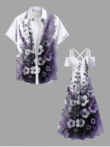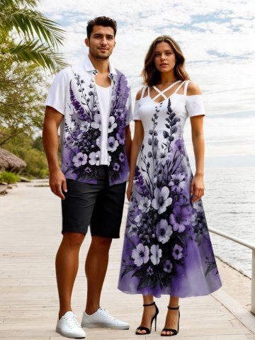 Tenue de plage hawaïenne assortie grande taille à imprimé floral et feuilles ombré, idéale pour les couples - Violet Clair - Violet Clair