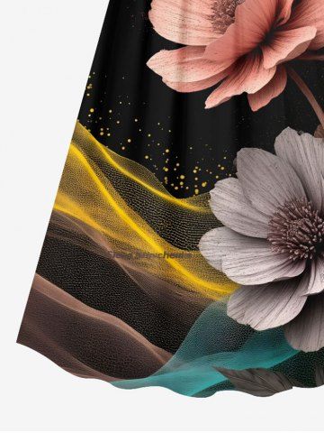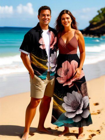 Tenue de plage hawaïenne assortie grande taille à imprimé floral et paillettes pour couple - Noir - Noir