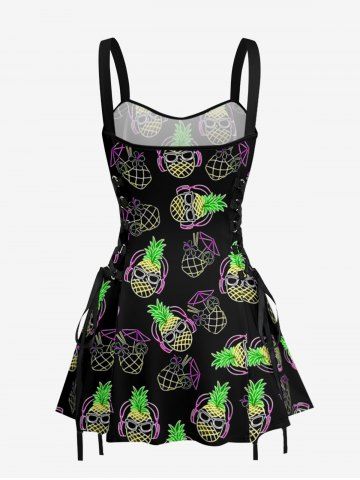 Tenue de plage hawaïenne assortie grande taille à imprimé jus d'ananas pour couples - Noir - Noir