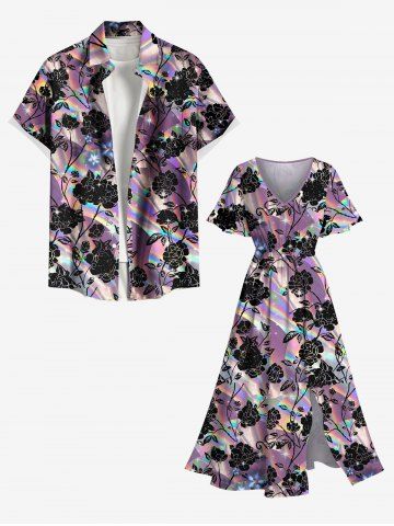 Tenue de plage hawaïenne assortie grande taille à imprimé rose arc-en-ciel pour couples - Pourpre - Pourpre