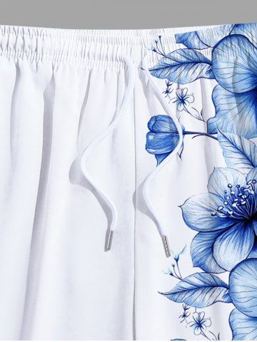 Tenue de plage hawaïenne assortie grande taille à imprimé tropical et fleurs d'hibiscus pour couples - Blanc - Blanc