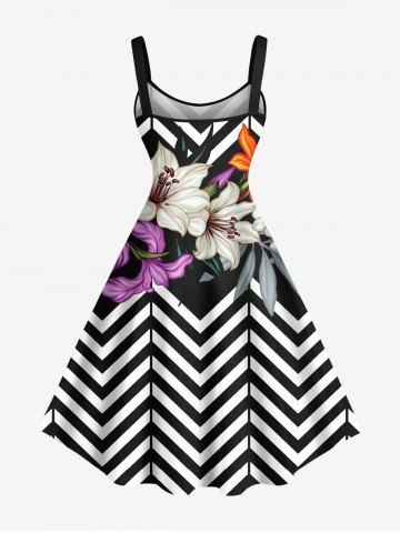 Tenues Hawaïennes Assorties > Tenue de plage hawaïenne assortie grande taille à imprimé zigzag, motif fleur de lys et feuilles, pour couples