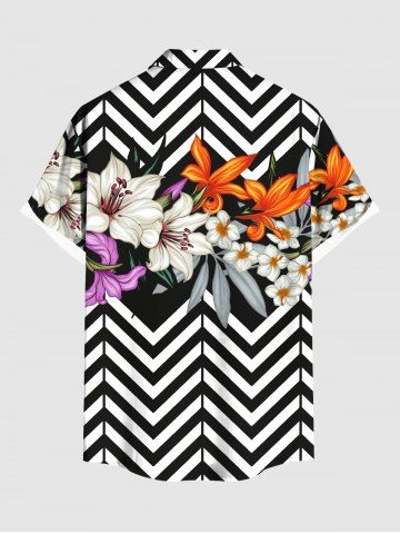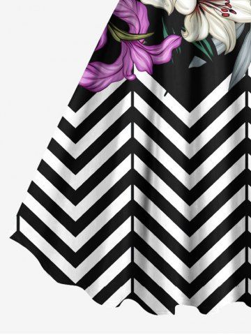 Tenue de plage hawaïenne assortie grande taille à imprimé zigzag, motif fleur de lys et feuilles, pour couples - Noir - Noir