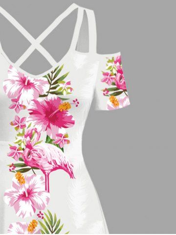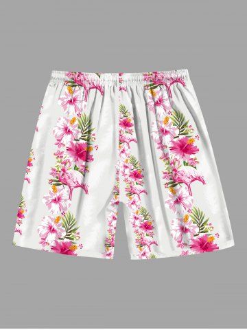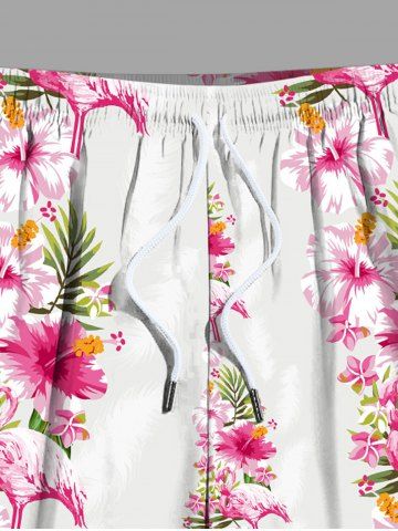 Tenues Hawaïennes Assorties > Tenue de plage hawaïenne assortie grande taille avec imprimé flamant rose et fleurs d'hibiscus pour couples