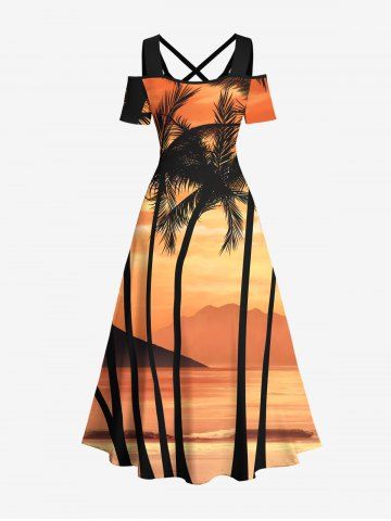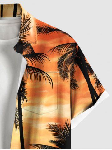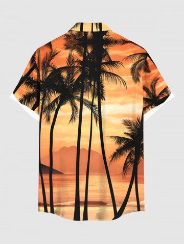 Tenue de plage hawaïenne assortie grande taille avec imprimé paysage marin de cocotiers et ciel ombré pour couples - Orange Clair