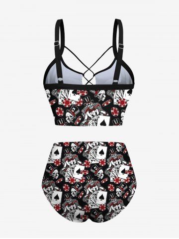Tenue de plage hawaïenne assortie grande taille avec jetons de casino et imprimé tête de mort pour couples - Noir - Noir