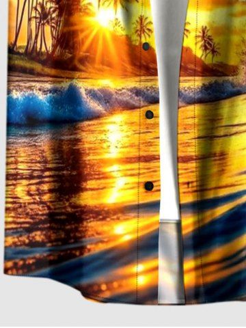 Tenue de plage hawaïenne assortie grande taille, imprimé vagues et cocotiers, pour couples - Jaune - Jaune