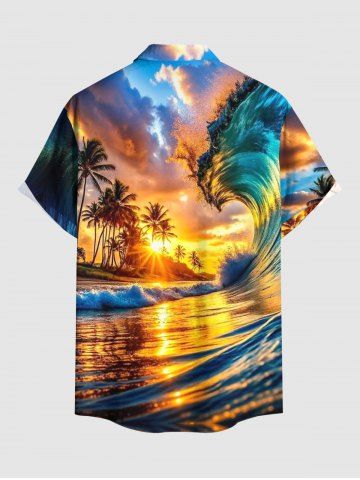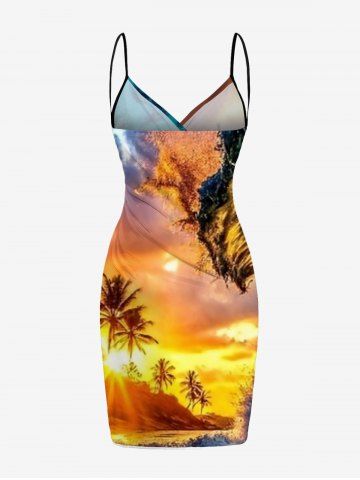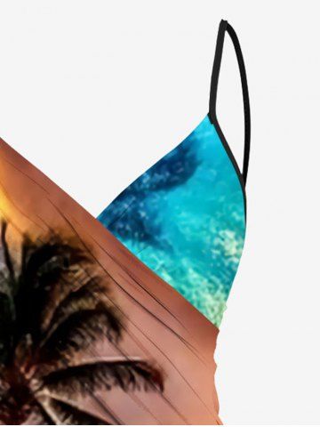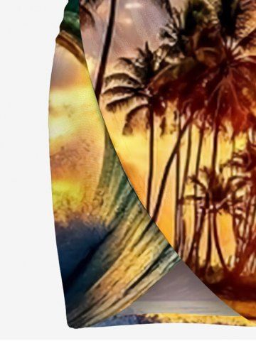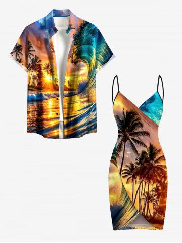 Tenues Hawaïennes Assorties> Tenue de plage hawaïenne assortie grande taille, imprimé vagues et cocotiers, pour couples