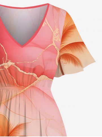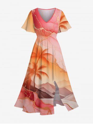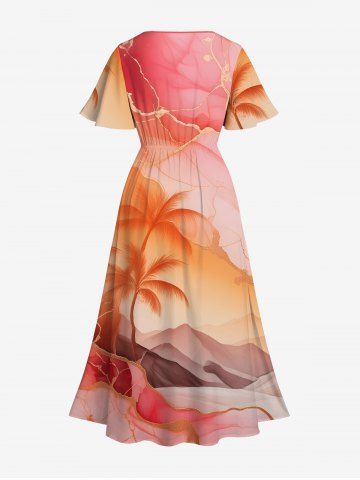 Tenue de plage hawaïenne assortie grande taille, motif ciel ombré, nuages, cocotiers, pour couples - Orange Clair