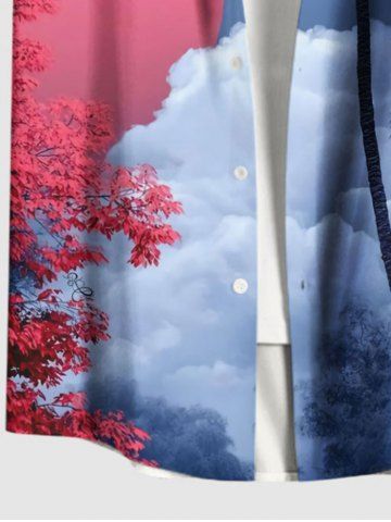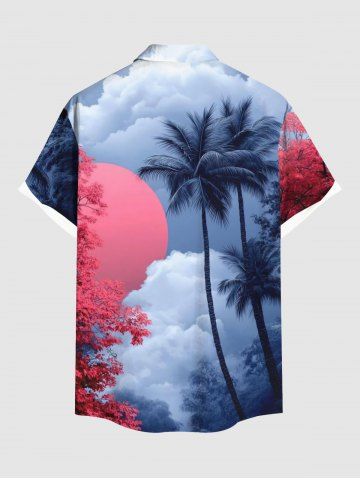 Tenue de plage hawaïenne assortie grande taille pour couples, motif cocotier, fleur, soleil, ciel ombré, nuage, imprimé - Bleu Profond