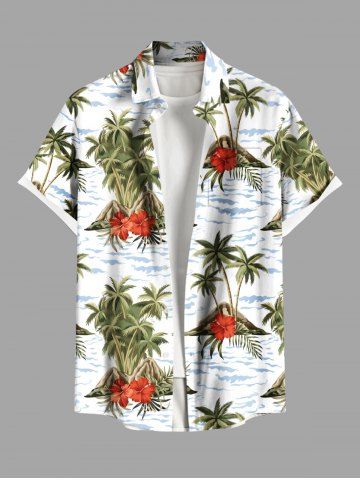 Tenue de plage hawaïenne assortie grande taille, motif cocotier, hibiscus, vagues de la mer, pour couples - Blanc - Blanc