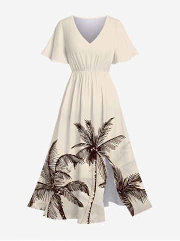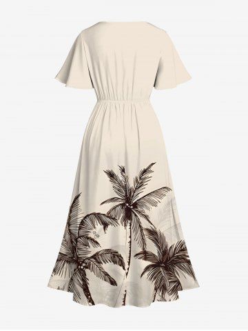 Tenue de plage hawaïenne assortie grande taille, motif cocotier peint à la main, pour couples - Blanc De Crème