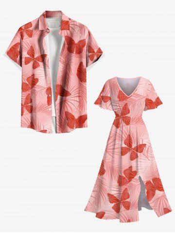 Tenues Hawaïennes Assorties > Tenue de plage hawaïenne assortie grande taille à imprimé feuilles tropicales et papillons pour couples