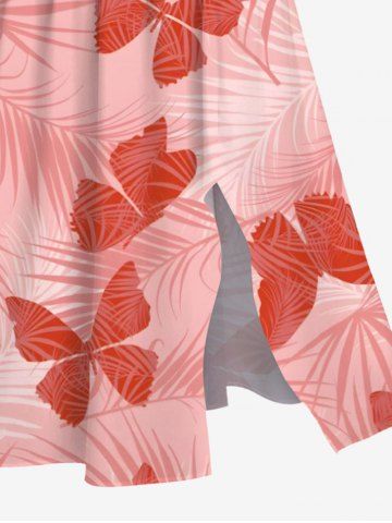 Tenue de plage hawaïenne assortie grande taille à imprimé feuilles tropicales et papillons pour couples - Rouge - Rouge