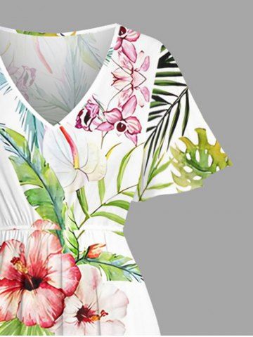 Tenues Hawaïennes Assorties> Tenue de plage hawaïenne assortie grande taille pour couples, avec fleurs d'hibiscus, feuilles tropicales, ananas et oiseaux