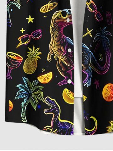 Tenue de plage hawaïenne assortie grande taille pour couples, avec imprimé dinosaure, cocotier et jus d'ananas - Noir - Noir