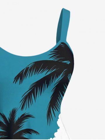 Tenue de plage hawaïenne assortie grande taille pour couples, imprimé vagues, cocotiers et paysage marin - Vert - Vert