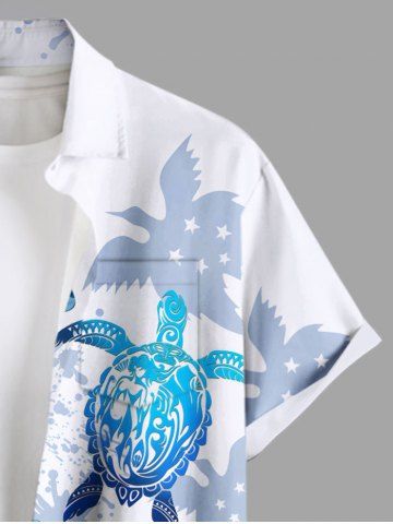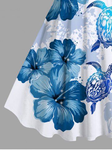 Tenue de plage hawaïenne assortie grande taille pour couples, imprimée de fleurs, tortues et oiseaux. - Blanc - Blanc