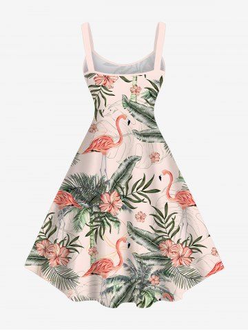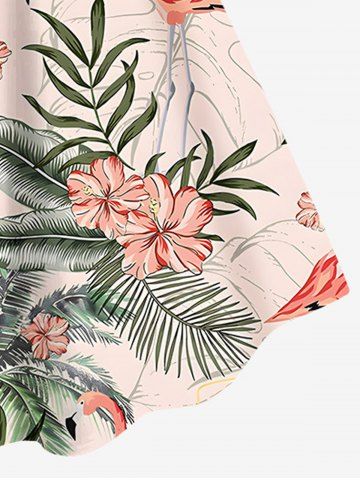 Tenues Hawaïennes Assorties> Tenue de plage hawaïenne assortie grande taille pour couples, motif flamant rose, hibiscus, feuilles tropicales, cocotier