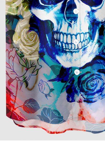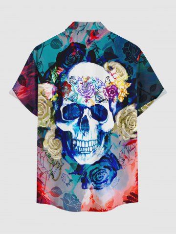 Tenue de plage hawaïenne assortie pour couples, à imprimé floral et tête de mort - Bleu - Bleu