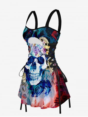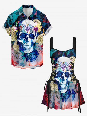 Tenues Hawaïennes Assorties > Tenue de plage hawaïenne assortie pour couples, à imprimé floral et tête de mort